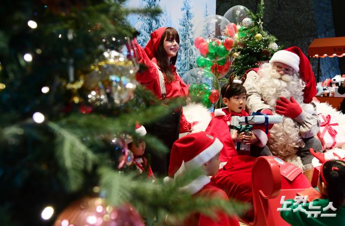 워커힐 호텔앤리조트가 크리스마스 시즌을 맞아 19일 오전 서울 광진구 그랜드 워커힐 호텔 로비에서 ‘핀란드 공인 산타와 함께하는 마법 같은 크리스마스 시즌 오픈’ 미디어 오픈 행사를 진행하고 있다.
