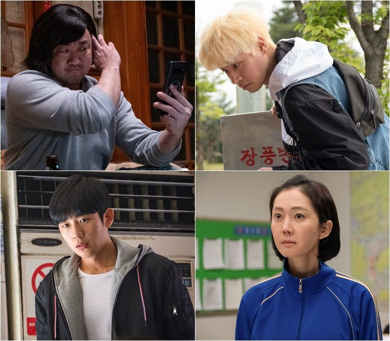 왼쪽부터 시계방향으로 거석이 형 역 마동석, 택일 역 박정민, 택일 모 정혜 역 염정아, 상필 역 정해인 (사진=외유내강 제공)
