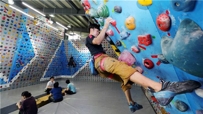 실내암벽장은 보조 장비 없이 자신의 팔과 다리로만 바위에 오르는 '볼더링(bouldering)'용 시설로 지난해 인공암벽장 리모델링 공사를 통해 새로 조성됐다.