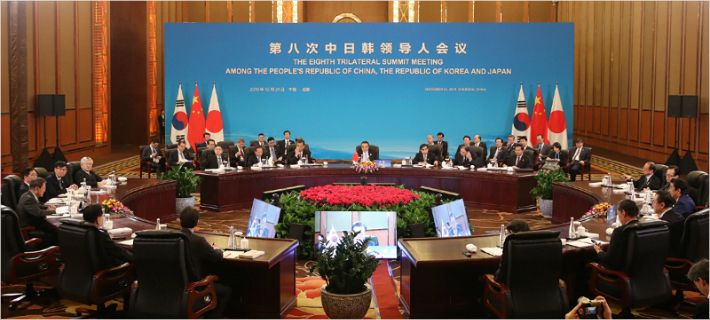 이날 정상회의는 2개의 세션으로 나뉘어 진행된다. 제1세션 의제는 '3국 협력 현황 평가 및 발전 방향'으로 3국 정상은 지난 1999년 출범한 한일중 협력체제의 20년을 돌아보고 향후 발전 방향에 대해 논의할 예정이다.