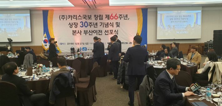 카리스국보 하현 대표이사는 이날 오전 11시 부산 해운대구 벡스코에서 열린 창립 66주년, 상장 30주년 기념식에서 "코스피 상장을 위해 서울로 옮겼던 본점을 상장 30주년을 맞아 부산으로 옮기겠다"며 "국보는 부산에서 제2의 창업을 선언한다"고 밝혔다.