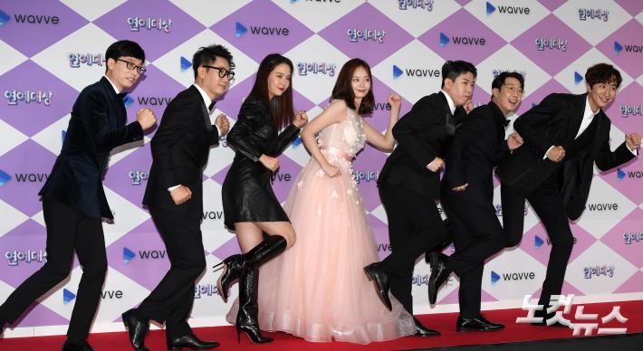 SBS예능 런닝맨팀(유재석, 지석진, 송지효, 전소민, 양세찬, 하하, 이광수)이 28일 오후 서울 마포구 SBS프리즘타워에서 열린 '2019 SBS연예대상 포토월'에서 포즈를 취하고 있다.
