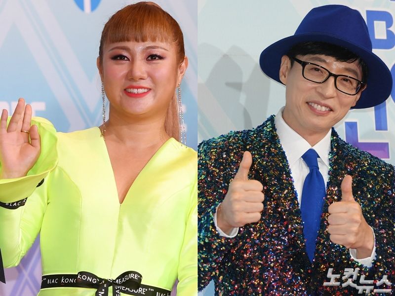 29일 오후 서울 마포구 상암동 MBC 본사에서 열린 '2019 MBC 방송연예대상 포토월'에 참석한 방송인 박나래(왼쪽)와 유재석 (사진=이한형 기자)