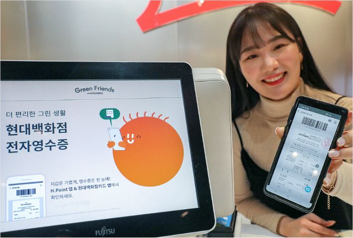 전자 영수증은 현대백화점카드 회원 또는 그룹 통합 멤버십 'H포인트' 회원이면 누구나 별도의 설정 없이 자동 발급된다. H포인트 앱과 현대백화점모바일카드 앱에서 확인할 수 있다.