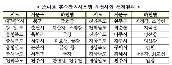 국토부는 "이번 사업을 통해 실시간 수위 정보를 기반으로 수문을 조작해 최근 빈번하게 발생하고 있는 국지성 집중호우에 효과적으로 대응할 수 있다"고 설명했다.