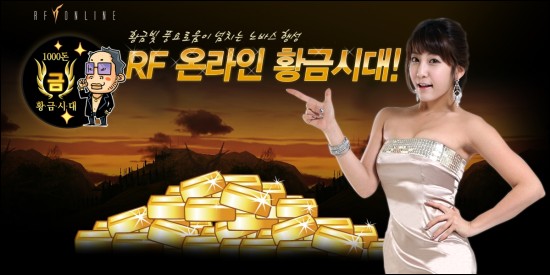 ''RF온라인 황금시대''는 게이머들이 황금 포인트 5만점을 획득하면 순금(24K) 1돈(3.75g)을 살 수 있는 순금 교환권을 선사하는 행사로 업계 이벤트 가운데 최대 금액이라는 점에서 주목을 받고 있다.