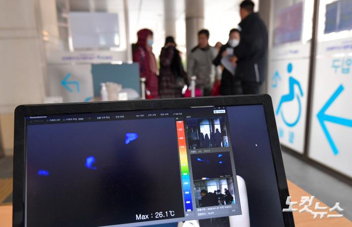 설 연휴 마지막 날인 27일 서울 동작구 보라매병원 출입구에 신종 코로나바이러스(우한 폐렴) 감염에 대응하기 위한 체온 감지 열화상카메라 시스템이 설치돼 있다.