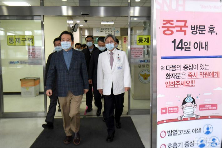 정세균 국무총리가 지난 27일 서울 동작구 보라매병원을 찾아 신종 코로나바이러스 감염대응을 점검하고 있다. (사진=박종민 기자)