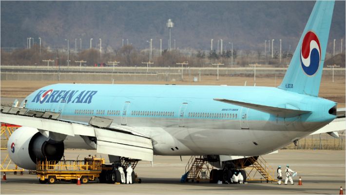 정부가 신종 코로나바이러스 감염증 발원지인 중국 후베이(湖北)성 우한(武漢)에 사실상 고립된 한국인 700여명의 국내 송환을 위해 오는 30∼31일 대한항공 전세기를 4차례 급파한다. 29일 오전 인천공항 대한항공 정비창에서 정비사들이 항공기를 정비하고 있다. (사진=연합뉴스 제공)