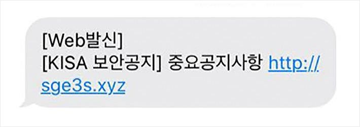 이상헌 침해대응단장은 "최근 보안공지를 사칭한 스미싱 문자가 지속적으로 유포되고 있으며 향후 주요 공공기관을 사칭한 문자로 변형돼 유포될 수 있으므로 주의가 요구된다"며 "출처가 불분명한 문자 수신 시 발신자 번호를 확인하고 악성앱 설치를 유도하는지 반드시 확인해야 한다"고 말했다.