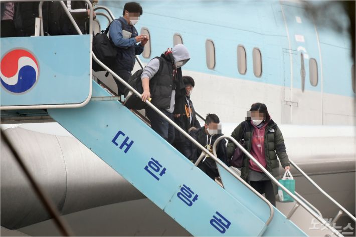 중국 후베이성 우한에 거주 중인 교민들을 태운 2차 전세기가 지난 1일 김포공항에 도착, 교민들이 전세기에서 내리고 있다.(사진=이한형 기자/자료사진)