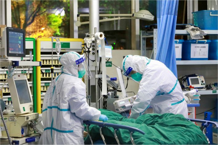 중국 후베이성 우한의 우한대학 부속 중난병원에서 보호복을 입은 의료진이 신종 코로나바이러스 환자를 치료하고 있다.(사진=로이터/연합뉴스)
