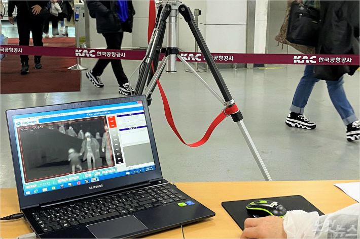 신종 코로나바이러스 확산에 따라 제주공항에 설치된 발열 감시 카메라. (사진=제주도 제공)