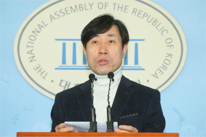 새로운보수당 하태경 의원이 6일 국회 정론관에서 발언하고 있다.(사진=연합뉴스)