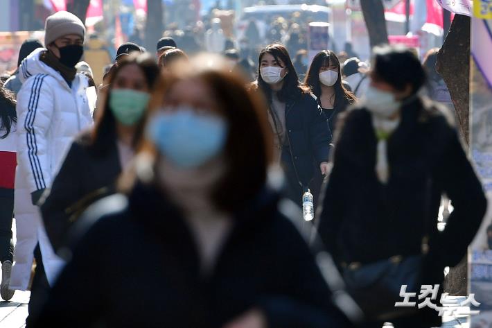 신종 코로나 바이러스 감염증 확산 우려가 커지는 가운데 8일 서울 명동거리에 대부분의 사람들이 마스크를 쓰고 거리를 거닐고 있다.