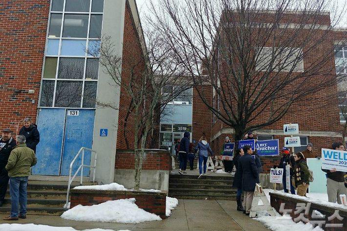 현지시간 11일 아침 6시부터 시작된 미국 뉴햄프셔주 대통령 예비선거가 치러지는 웹스터 스쿨에는 영하의 기온에 진눈개비가 내리는 짓궂은 날씨였지만 많은 유권자들이 투표소를 메우고 있었다.