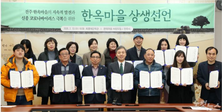 전주시와 한옥마을 건물주들이 상생선언을 발표하고 있다(사진=전주시청 제공)