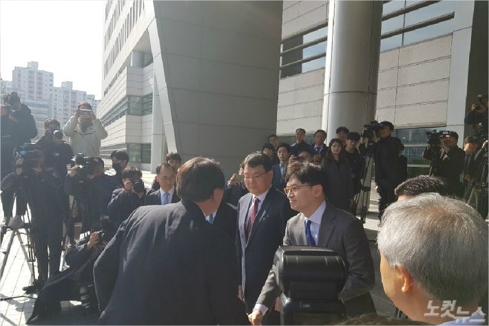 특히, 자신의 최측근이자 직전 대검 반부패강력부장이던 한동훈 차장검사와는 아무 말 없이 서로 미소를 지으며 악수를 나눠 눈길을 끌었다.
