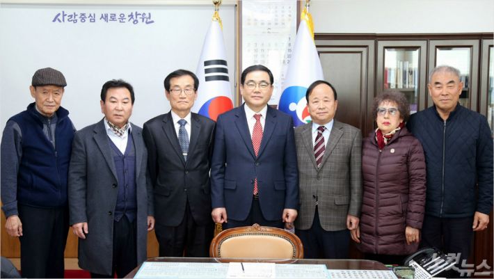 허성무 창원시장은 18일 법원의 마산보도연맹 재심사건 무죄선고를 받은 희생자 유가족 6명을 초청해 간담회를 마련했다. (사진=창원시 제공)