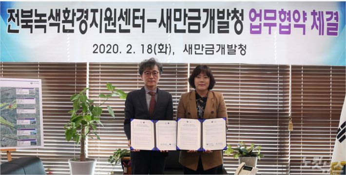 새만금개발청이 전북녹색환경지원센터와 환경 친화적인 새만금 개발·이용을 위한 업무협약을 체결했다.
