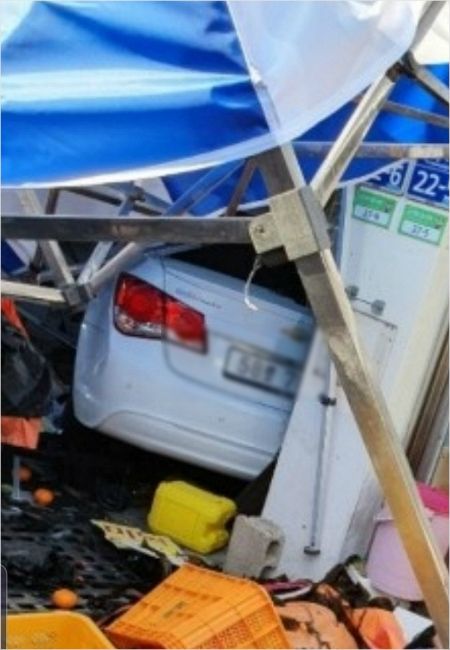 이 사고로 과일가게 앞에서 노점상을 하던 B씨(52)가 차량에 치어 숨졌다.