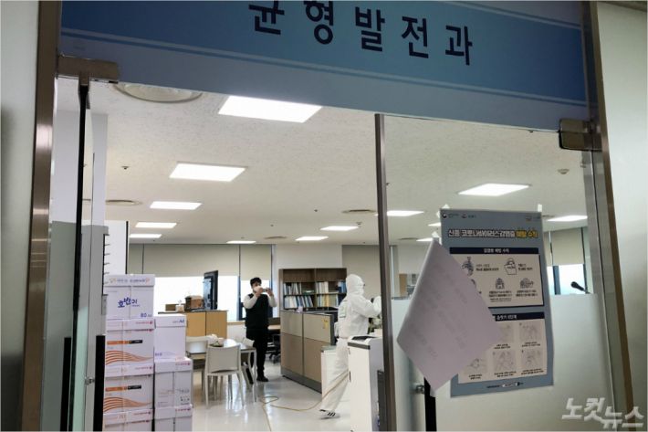 해당부서는 지난 25일 오후 늦게 이 같은 사실을 통보받았고, 선제적 대응 차원에서 이날 오전부터 직원 11명 모두를 자체적으로 자가격리 조치했다. 또한 해당 사무실을 임시 폐쇄하고 집중방역을 실시했다.