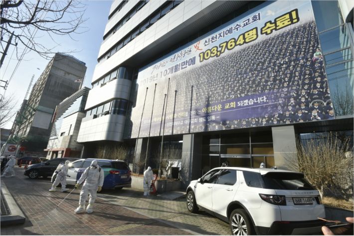 대구신천지 방역작업(사진=연합뉴스)