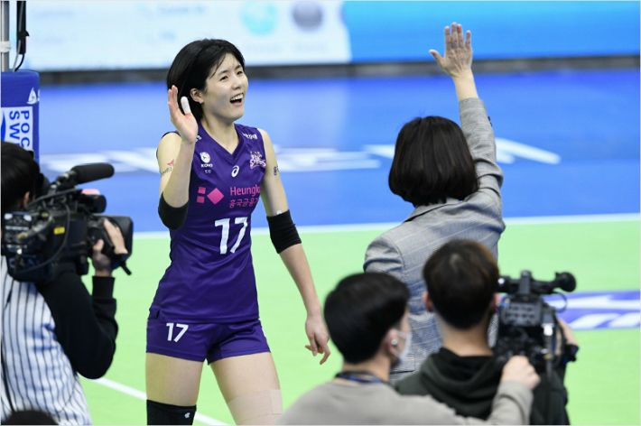 박미희 감독도 이재영의 기부 소식에 환한 미소를 감추지 않았다.