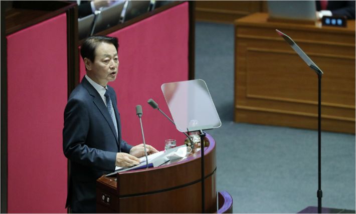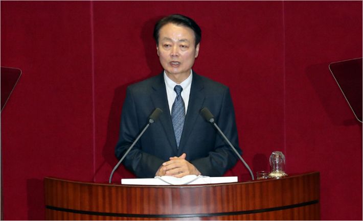 미래한국당 한선교 대표가 3일 오후 국회 임시회 6차 본회의에서 비교섭단체 대표연설을 하고 있다.(사진=연합뉴스)