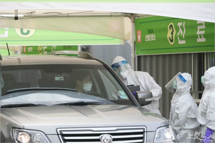 3일 서울 송파구 잠실종합경기장에 마련된 코로나19 드라이브 스루 선별진료소를 찾은 시민들이 차량 내부에서 검사를 받고 있다. (사진=이한형 기자/자료사진)