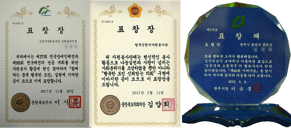 충북지사와 청주시장 등 단체장은 물론 지방의회로부터 수차례 받은 수상 내역을 홈페이지와 유인물 등에 게재하며 홍보에 열을 올리고 있다.
