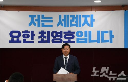 최영호 예비후보는 9일 오전 광주시의회에서 기자회견을 갖고 "세례자 요한 최영호는 신천지와 티끌만한 인연이 없음을 시민여러분께 분명히 말씀 드린다"며 "결코 신천지의 아들도 아니고 신천지로부터 어떠한 정치적 도움도, 지원도 받지 않았다"고 밝혔다.