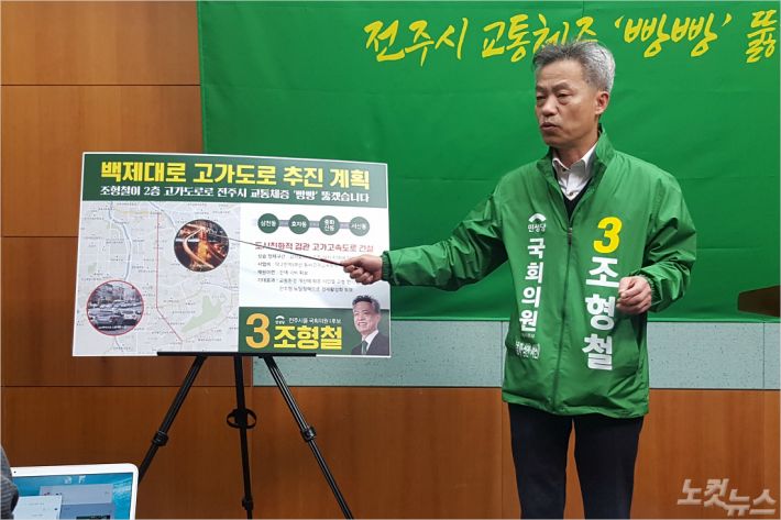 민생당 조형철 예비후보(전북 전주을)가 전주시 주요 간선도로인 백제로를 2층 고가도로로 개설해 교통체증을 해결하겠다고 밝혔다.