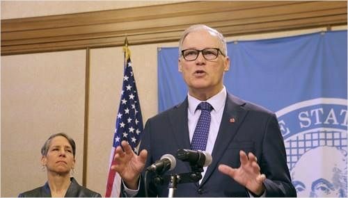 코로나19 관련 지침을 발표하는 제이 인슬리 워싱턴 주지사(사진=연합뉴스)