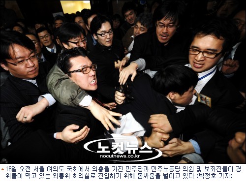 한미FTA 비준 동의안 상정을 놓고 여야가 몸싸움을 벌이면서 치열한 공방전이 벌어지고 있는 가운데 한나라당 손범규 의원(경기 덕양갑)이 "저렇게 악을 쓰면서 싸우니 군사쿠데타가 난 것"이라며 민주당을 원색적으로 비난하고 나서 논란이 예상된다.