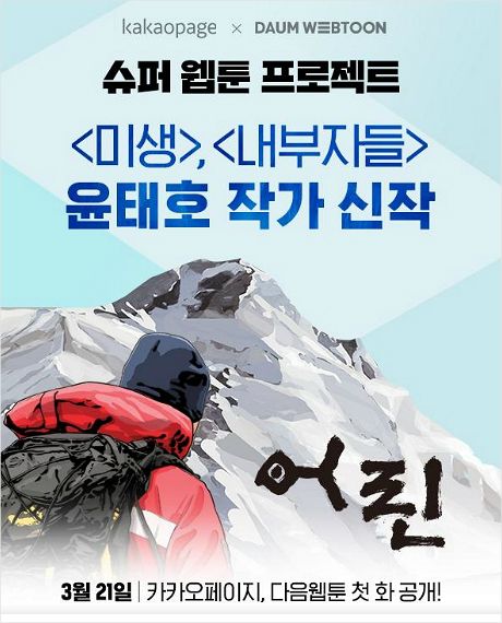 카카오페이지는 '슈퍼 웹툰 프로젝트' 두 번째 작품으로 윤태호 작가의 신작 '어린-남극편(어린)'을 선정하고 21일 첫 화를 공개한다고 13일 밝혔다.