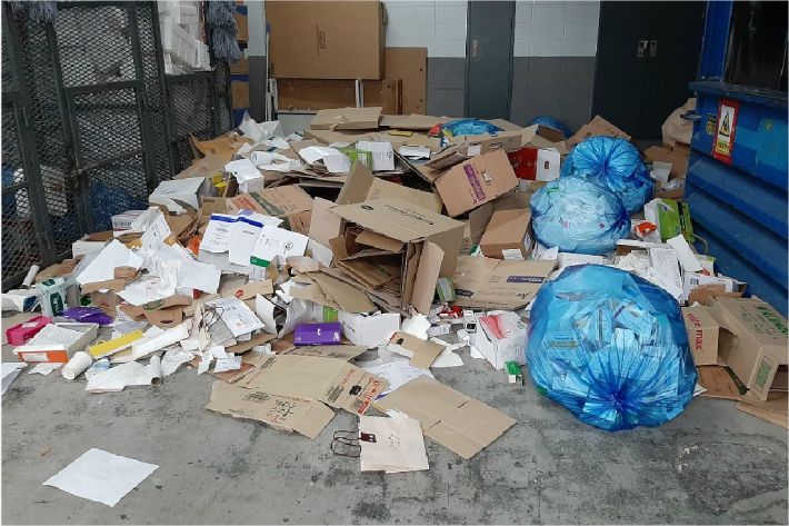 병원 청소 노동자들이 수거한 쓰레기가 쌓여 있다. (사진=청소 노동자 제공)