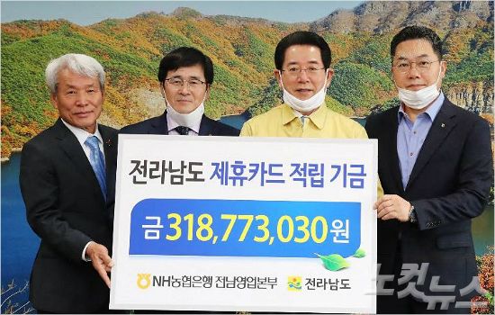 NH농협은행 전남영업본부는 지난 13일 전남도청에서 '전라남도 제휴카드 적립기금' 3억1천8백77만3,030원을 전라남도에 전달했다고 16일 밝혔다.