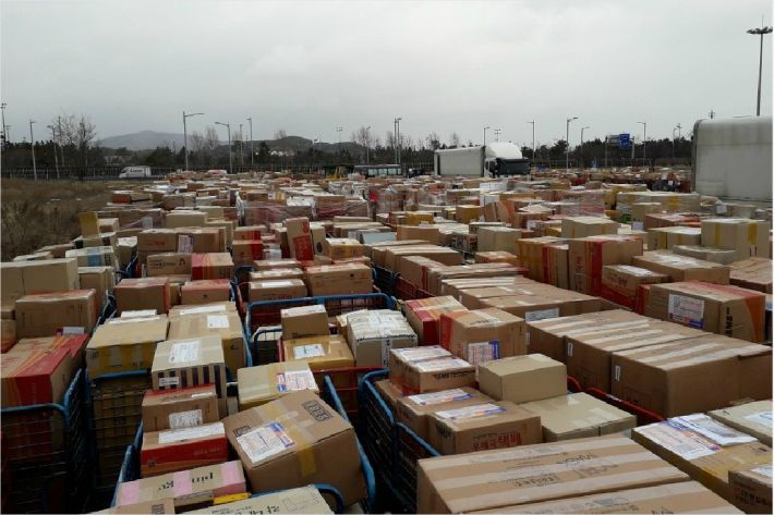 중국 이외에도 접수중지 국가 37개국, 배달지연국가 46개국의 보류분은 2만 4천통으로 인천 국제우편물류센터에 발 묶인 국제소포는 발착장을 넘어 주차장까지 매꿔졌다.