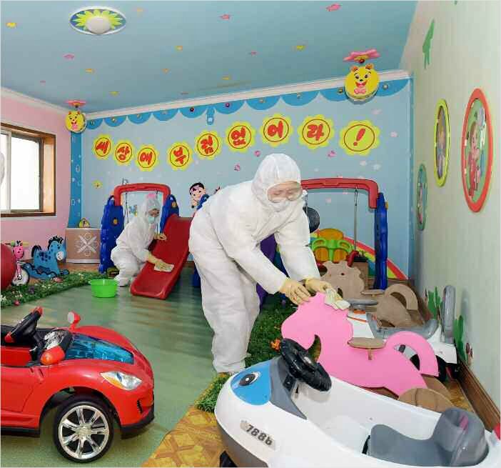 북한 평양 어린이집 방역(사진=뉴스1 제공)