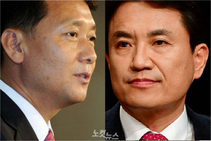 21대 총선 더불어민주당 강원권역선대위원장을 맡은 이광재 전 강원지사(왼쪽. 원주 갑 공천)와 미래통합당 강원도당위원장 직무대행과 공동선대위원장을 맡은 김진태 의원(춘천 철원 화천 양구 갑 공천).(자료사진)