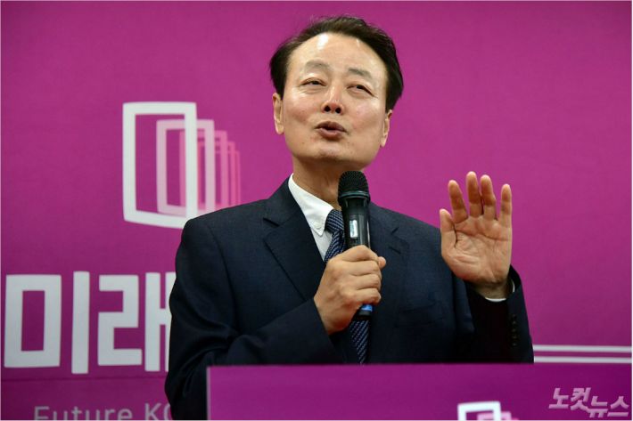미래한국당 한선교 대표가 19일 오후 서울 영등포구 당사에서 당 대표직 사퇴 기자회견을 하고 있다. 윤창원기자