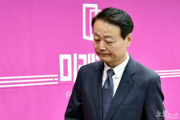 미래한국당 한선교 대표가 19일 오후 서울 영등포구 당사에서 당 대표직 사퇴 기자회견을 마치고 이동하고 있다. (사진=윤창원 기자)