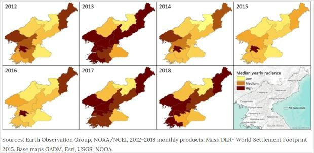 이후 2016년부터 최근 조사 가능 시점인 2018년까지 특히 함경도와 양강도, 평안도 지역의 야간 조명 강도가 크게 높아진 것이 확인됐다.