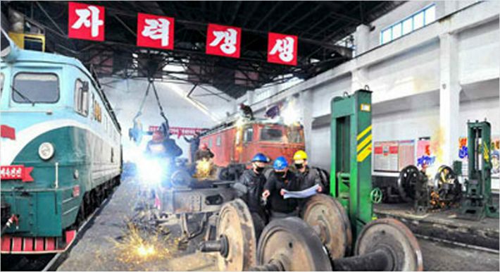 북한 고원철도분국 고원기관차대 노동자들의 모습(사진=뉴스1 제공)