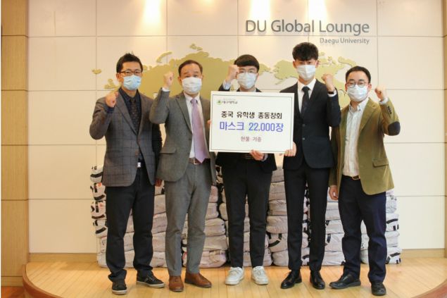 대구대는 20일 조형예술대학 5호관 글로벌라운지에서 국제처 관계자와 중국인 유학생회 재학생들이 함께 참석한 가운데 마스크 전달식을 가졌다.
