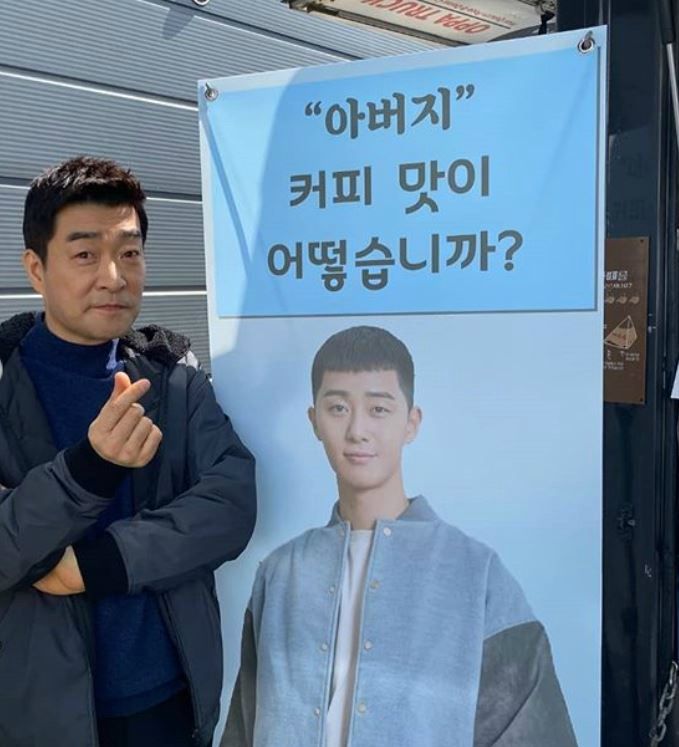 해당 사진에 실린 현수막을 통해 박서준은 '이태원 클라쓰' 속 대사를 인용해 '아버지 커피 맛이 어떻습니까? 오늘도 인상적인 하루 보내세요'라고 응원했다.