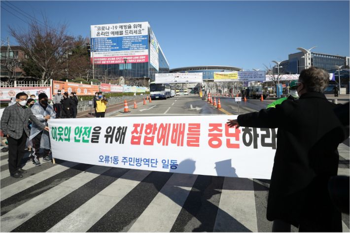 교회 관계자들은 "불가피하게 예배당에 나와서 예배할 수밖에 없는 분들을 막을 수는 없다"며 "입장 시 안전조치를 철저히 하고 있다"고 밝혔다.
