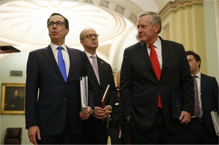 이날 최종 협상에는 공화당의 미치 매코널 상원 원내대표와 민주당 척 슈머 상원 원내대표, 스티븐 므누신 재무장관, 우랜드 담당관, 마크 메도스 신임 백악관 비서실장이 참석했다.