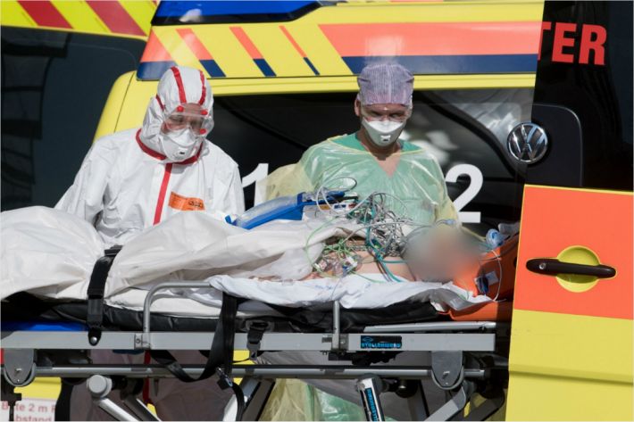 이탈리아 신종 코로나바이러스 감염증(코로나19) 환자가 25일(현지시간) 독일 작센 주 라이프치히의 한 병원에 도착하고 있다. 작센 주 병원들은 자국에서 치료받기 힘든 이탈리아 코로나19 환자 최소 6명을 받을 예정이다. (사진=연합뉴스)